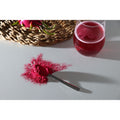 Drachenfrucht, auf Spanisch Pitaya genannt, stammt von mittelamerikanischen Kakteen. Ihren Namen verdankt sie ihren stachelartigen Auswüchsen. Pitaya ist reich an Vitaminen, Mineralstoffen, Ballaststoffen und Antioxidantien. Geschmacklich liegt sie zwischen Kiwi und Birne. Die Verarbeitung zu Pulver, „Pink Matcha“, erfolgt durch Gefriertrocknung, einem Verfahren, das die wertvollen Nährstoffe erhält. Genießen Sie sie mit Joghurt, Saft oder Eiscreme oder bewundern Sie einfach ihre einzigartige, intensive pink-violette Farbe. Zubereitung: 2 EL fein gehackte Pitaya / 250 ml heißes oder kaltes Wasser